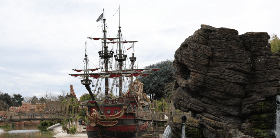 Inspirada en la época de la exploración y la aventura en alta mar, esta atracción permite a los visitantes subir a bordo de un gran barco pirata.